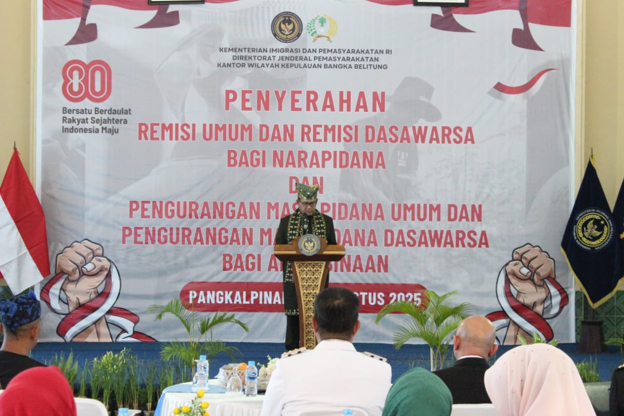 Babel,VissionNews.Com- Dalam rangka memperingati Hari Ulang Tahun ke-80 Republik Indonesia, Kantor Wilayah Direktorat Jenderal Pemasyarakatan (Kanwil Ditjenpas) Kepulauan Bangka Belitung (Babel) menyerahkan Remisi Umum (RU) dan Remisi Dasawarsa (RD) kepada warga binaan di seluruh wilayah Bangka Belitung, Minggu (17/08/2025).
