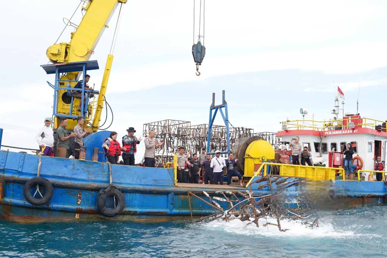 “Semoga karang buatan ini bisa memperbanyak ikan, mempermudah nelayan, dan bahkan menjadi daya tarik wisata laut ke depannya,” ujarnya.