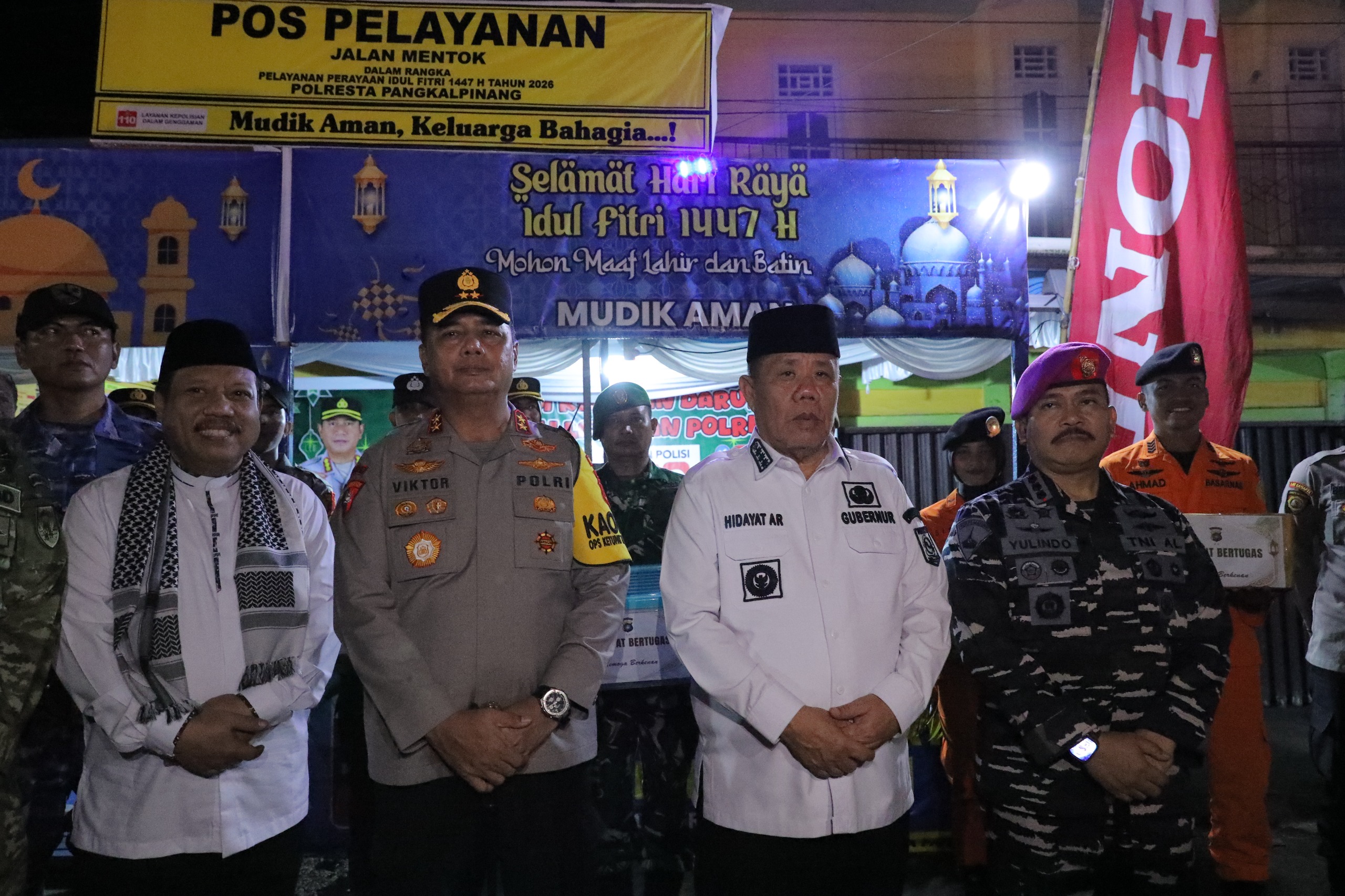 BABEL,VISSIONNEWS.COM- Menjelang Hari Raya Idulfitri 1447 Hijriah, Gubernur Kepulauan Bangka Belitung, Hidayat Arsani, turun langsung meninjau sejumlah pos pengamanan dan pelayanan di wilayah Pangkalpinang, Jumat (20/3/2026) malam.