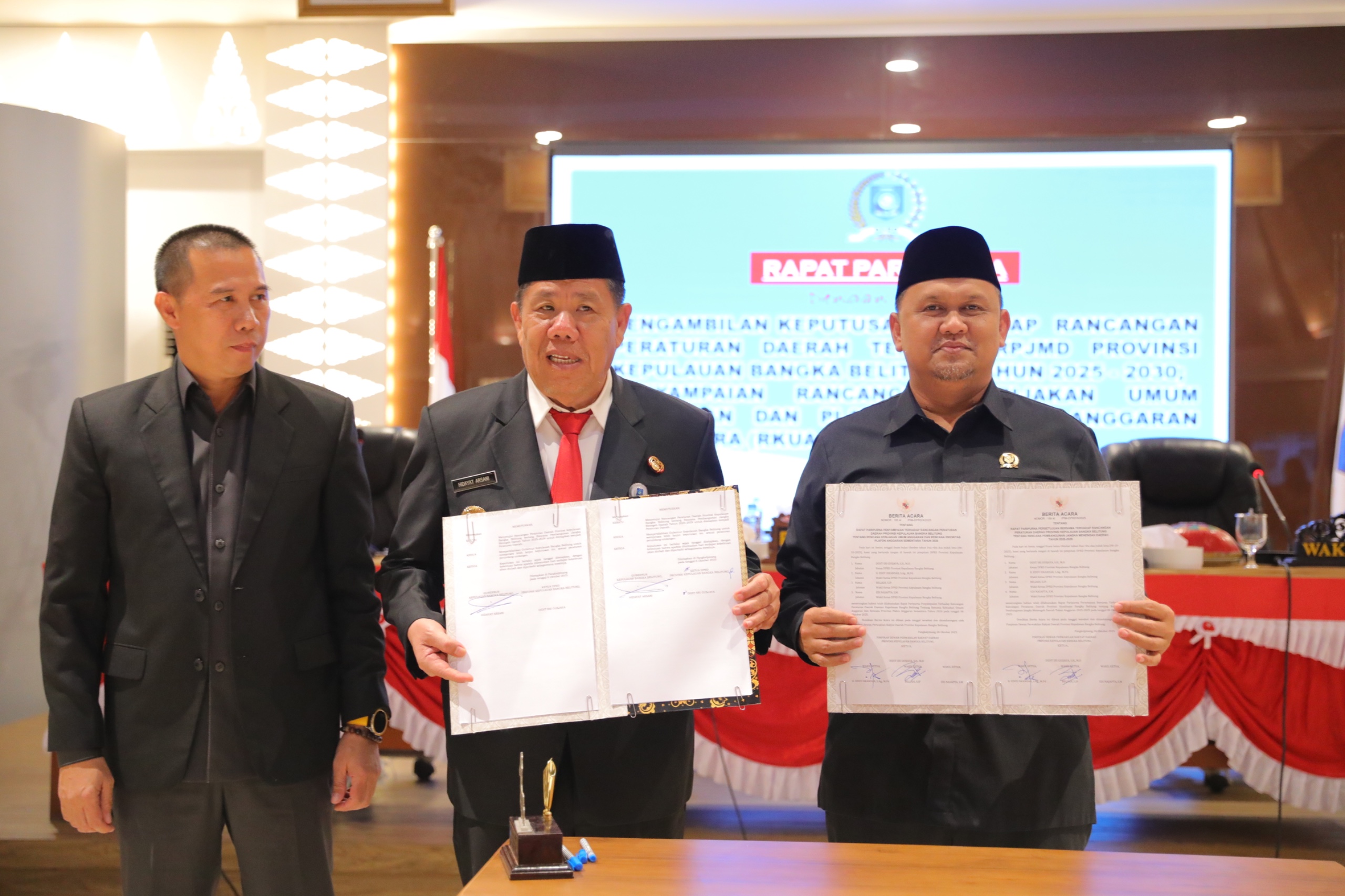 Hal ini seiring disahkannya Rancangan Peraturan Daerah (Ranperda) Rencana Pembangunan Jangka Menengah Daerah (RPJMD) 2025-2029 oleh Dewan Perwakilan Rakyat Daerah (DPRD) Babel, dalam Rapat Paripurna Pengambilan Keputusan Terhadap Raperda RPJMD Tahun 2025-2029, di Gedung Mahligai, Rumah Dinas Gubernur Babel, Senin (6/10/2025).