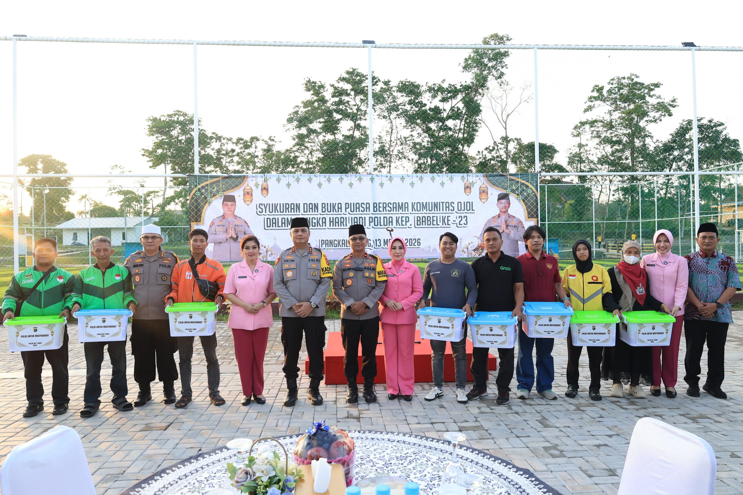 BABEL,VISSIONNEWS.COM- Polda Kepulauan Bangka Belitung menggelar kegiatan buka puasa bersama dengan komunitas pengemudi ojek online (ojol) di Pangkalpinang, Jumat (13/3/2026). Kegiatan yang berlangsung di Bhaypark ini sekaligus menjadi rangkaian syukuran Hari Ulang Tahun ke-23 Polda Babel.
