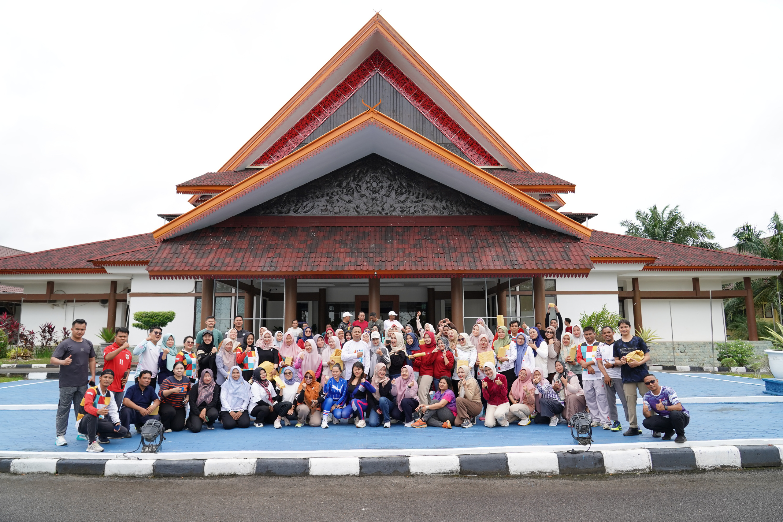 Usai kegiatan bersih-bersih, para pegawai mengikuti senam bersama di halaman kantor. Suasana penuh keakraban dan kekompakan terlihat saat seluruh pegawai berbaur tanpa sekat jabatan.