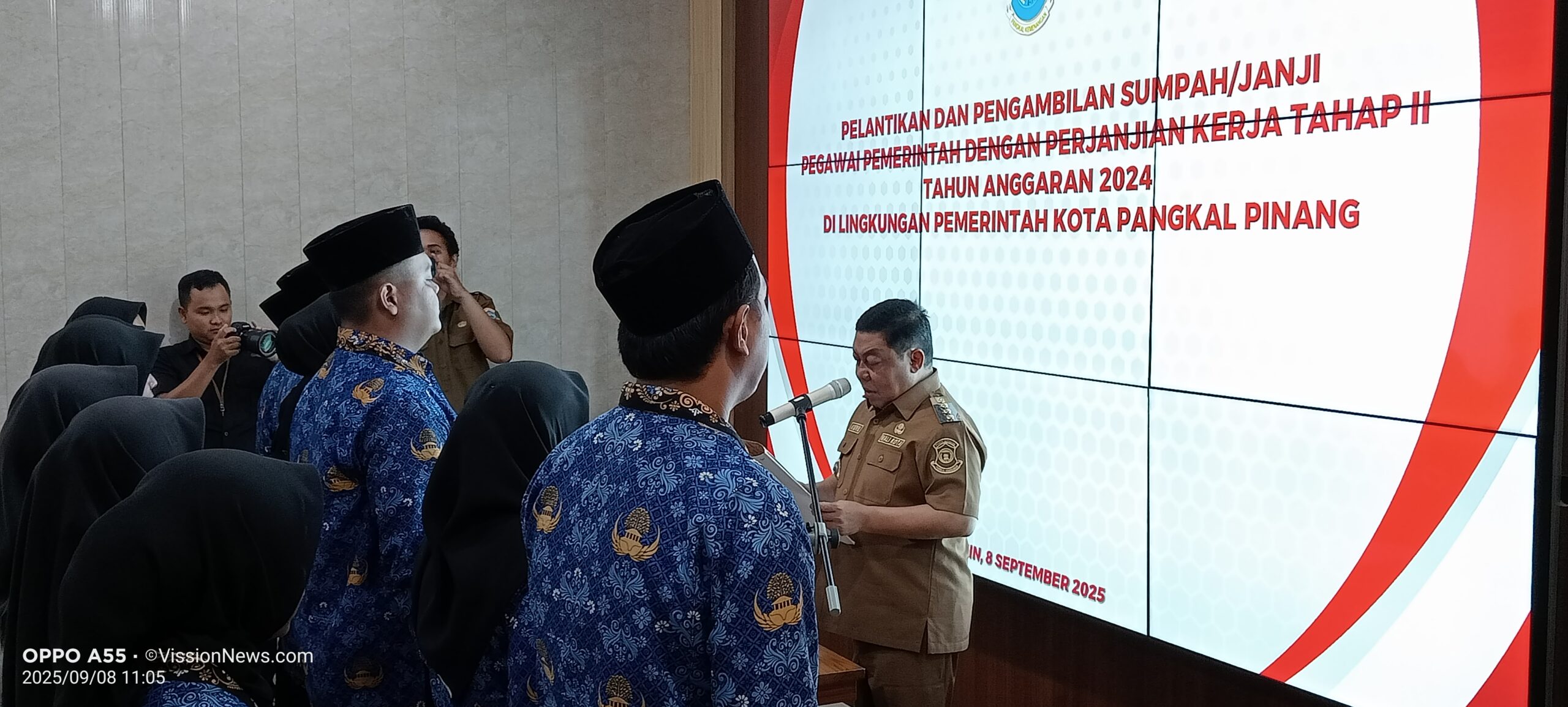 Pangkalpinang,VissionNews.Com- Penjabat (Pj) Walikota Pangkalpinang, M. Unu Ibnudin, menyampaikan bahwa pelantikan Pegawai Pemerintah dengan Perjanjian Kerja (P3K) yang digelar hari ini merupakan pelantikan terakhir gelombang kedua untuk 11 orang tenaga guru dan 1 orang tenaga kesehatan.