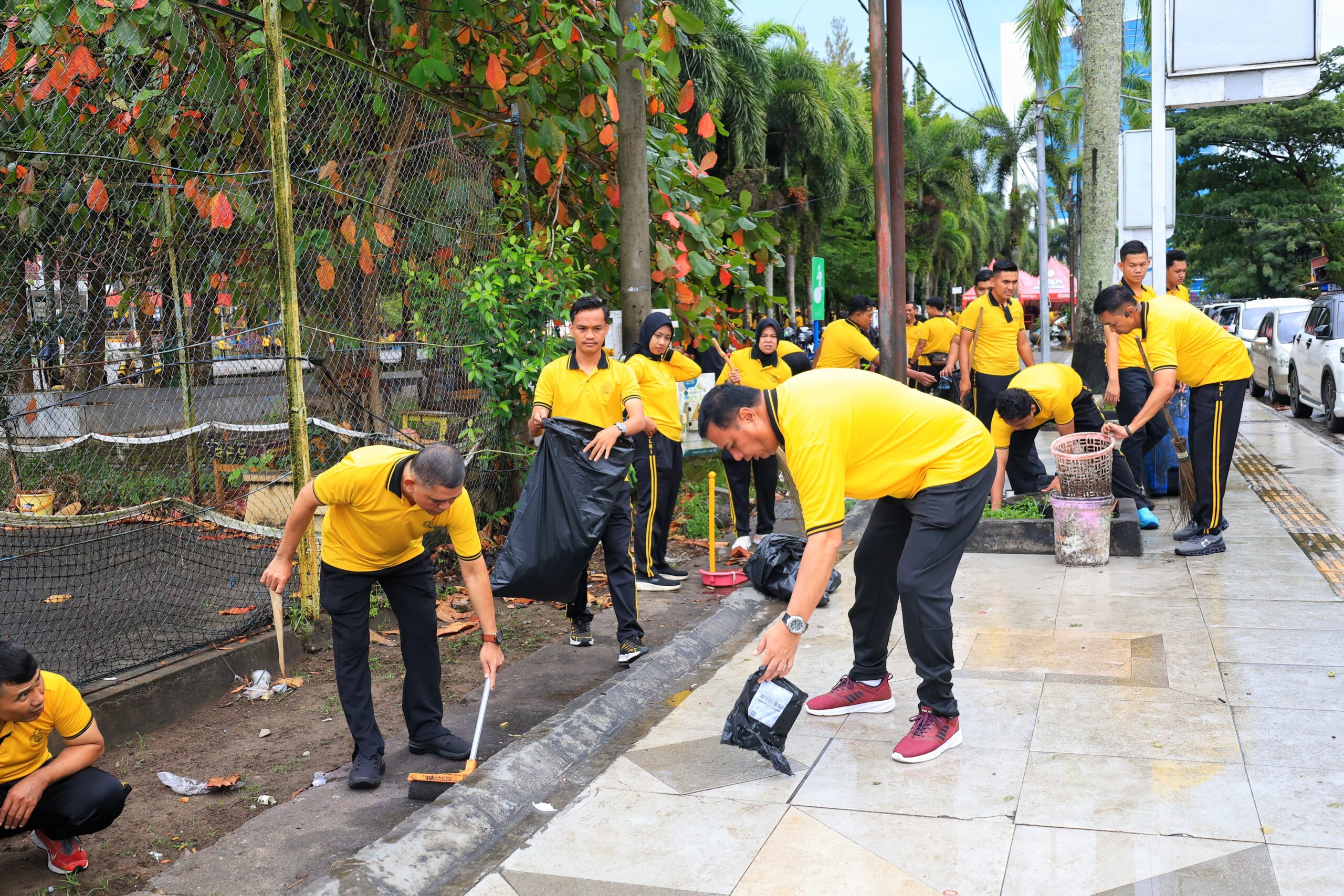 Pantauan di lapangan, kegiatan dimulai sejak pukul 07.30 WIB. Personel Polda Babel disebar di sejumlah titik di sepanjang kawasan ATM untuk membersihkan sampah, saluran air, serta area publik yang rawan tercemar.