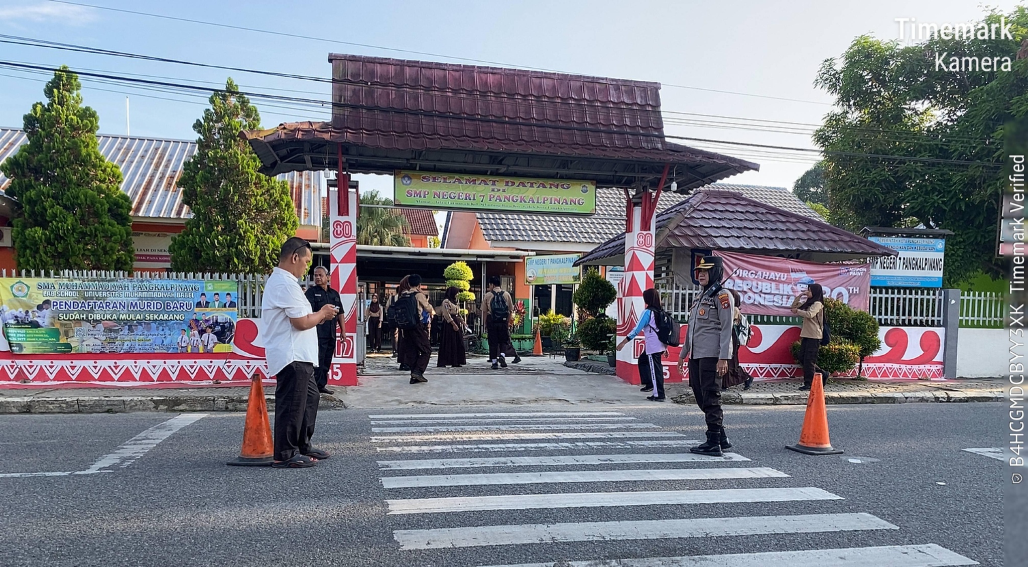 Polresta Pangkalpinang Gelar Strongpoint di Depan SMPN 7 Pangkalpinang, Siswa Berangkat Sekolah Lebih Lancar