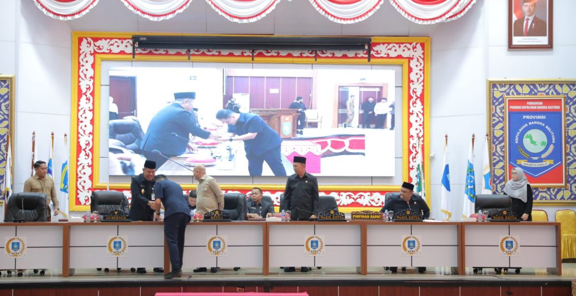 Babel,VissionNews.Com- Dewan Perwakilan Rakyat Daerah (DPRD) Provinsi Kepulauan Bangka Belitung (Babel) mengelar rapat Paripurna terkait Pengambilan Keputusan terhadap Rancangan Peraturan Daerah tentang Pertanggung Jawaban Pelaksanaan Anggaran Pendapatan Dan Belanja Daerah Kep. Babel Tahun Anggaran 2024 dan penyampaian rancangan perubahan Kebijakan Umum Prioritas Anggaran (KUA) serta Perubahan Prioritas dan Plapon Anggaran Sementara (PPAS) tahun anggaran 2025, bertempat di Ruang Rapat Paripurna DPRD Babel, Senin (21/07/25).