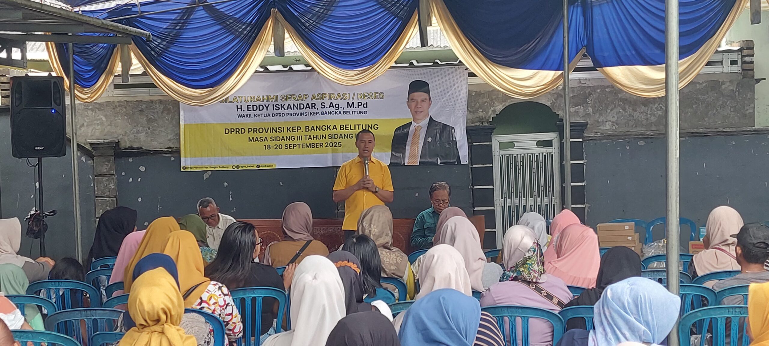 Babel,VissionNews.Com- Wakil Ketua DPRD Bangka Belitung (Babel), Eddy Iskandar, menggelar Reses Masa Sidang III Tahun Sidang I pada Sabtu (20/9/2025) di Kecamatan Gerunggang, Kota Pangkalpinang. Acara ini menjadi wadah bagi masyarakat untuk menyampaikan aspirasi terkait berbagai isu krusial, mulai dari kesehatan hingga pengelolaan sampah.