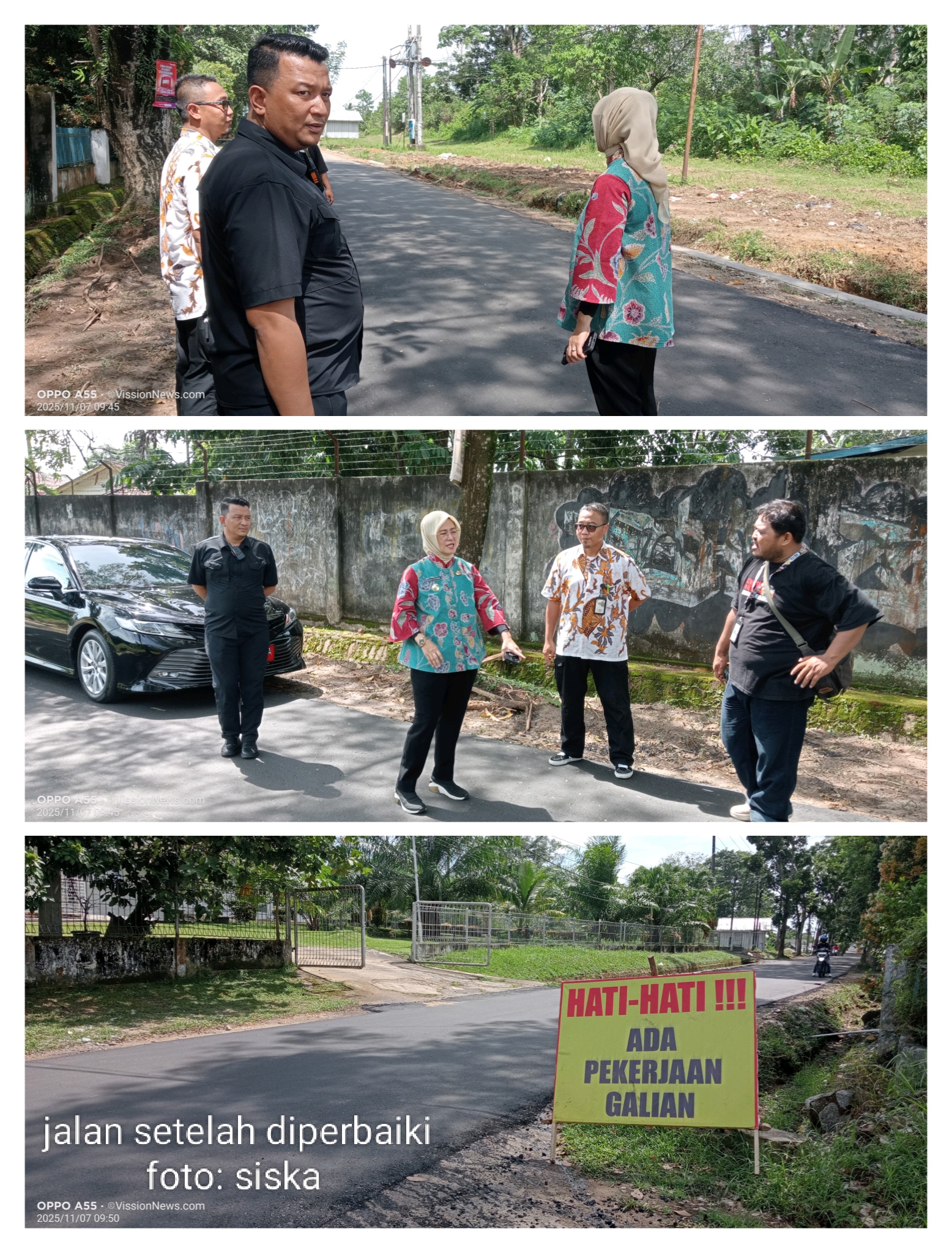 “Beberapa waktu lalu kami mendapat keluhan dari warga bahwa jalan ini banyak bolong dan sering terjadi kecelakaan saat malam hari. Hari ini kami cek langsung, dan alhamdulillah sudah dilakukan tindakan oleh Dinas PUPR dengan memasang blok cover serta mengaspal kembali jalan ini,” ujar Dessy, Kamis (07/11/2025).