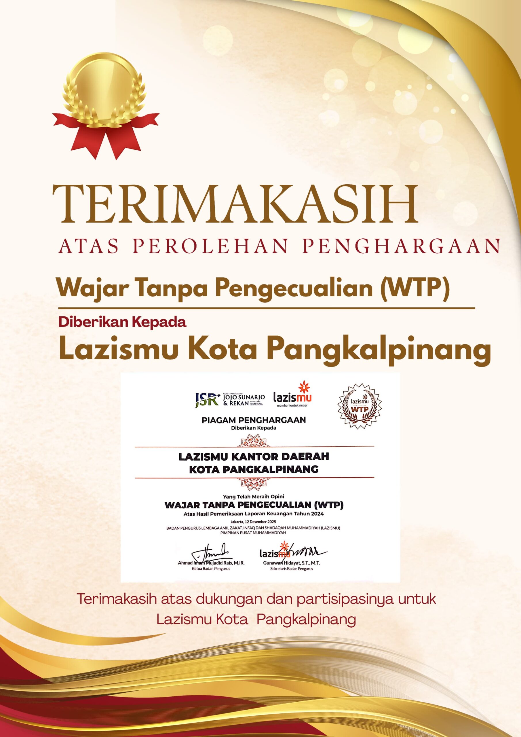 PANGKALPINANG,VISSIONNEWS.COM- Komitmen terhadap tata kelola keuangan yang profesional kembali dibuktikan oleh LAZISMU Kota Pangkalpinang. Lembaga pengelola zakat tersebut berhasil meraih piagam penghargaan Wajar Tanpa Pengecualian (WTP) atas laporan keuangan tahun buku 2024.