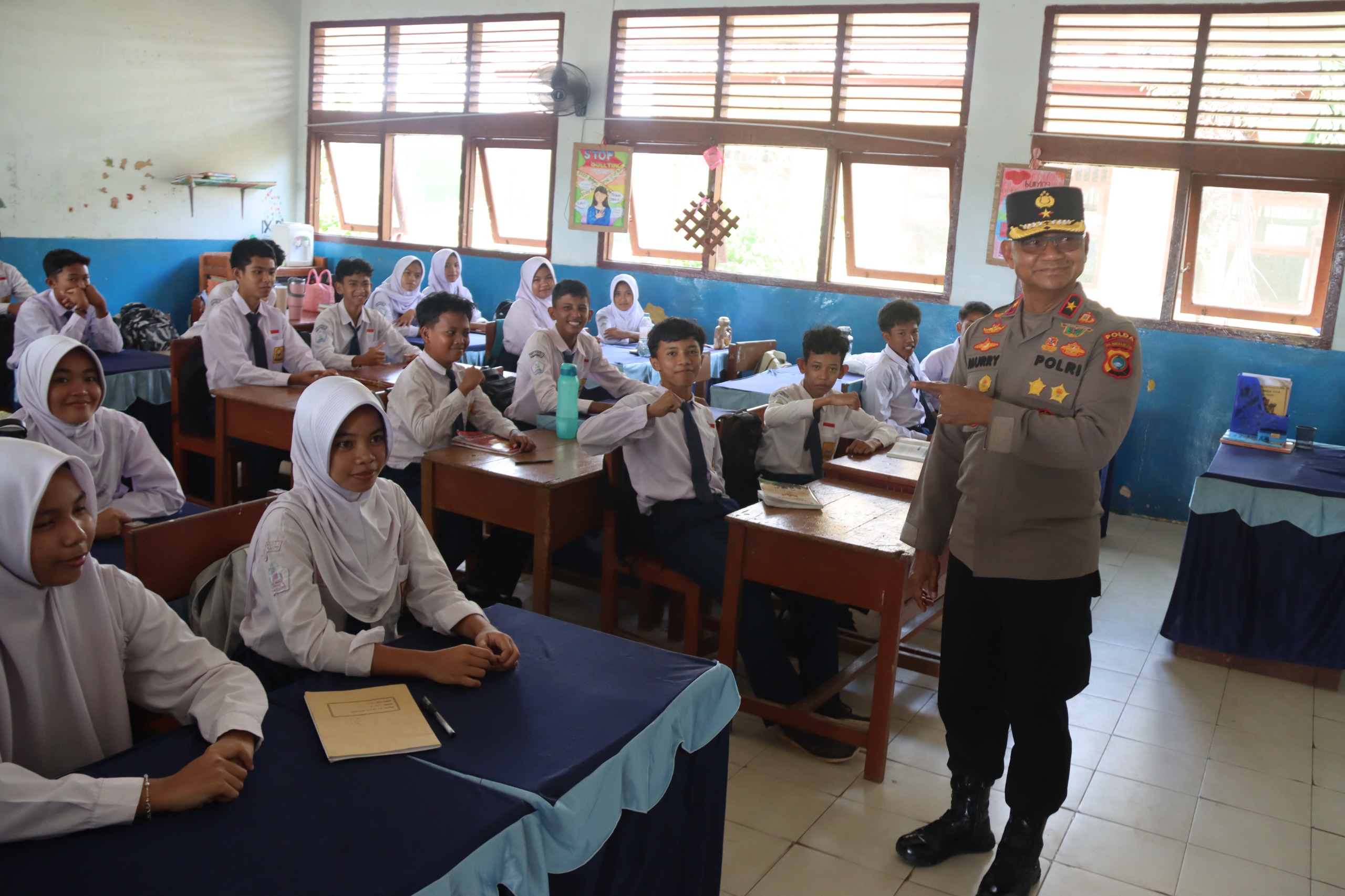 Di hadapan para siswa, Brigjen Pol Murry berbagi kisah perjalanan hidup dan kariernya di Kepolisian. Ia menegaskan bahwa latar belakang sebagai anak kampung bukanlah penghalang untuk meraih mimpi besar.